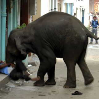 NUEVA DELHI, INDIA (08/JUN/2011).- Dos elefantes salvajes entraron hoy en una ciudad del sudoeste indio y mataron a una persona tras causar el pánico entre la población, informó la agencia local IANS.