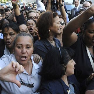 NUEVA YORK, ESTADOS UNIDOS (07/JUN/2011).- En la comparecencia de ayer, el ex director del Fondo Monetario Internacional (FMI), Dominique Strauss-Kahn, se declaró no culpable de los cargos de intento de violación a una empleada de un hotel en Nueva York. Afuera de la Corte acudió un grupo de empleadas de hoteles, quienes recriminaron el comportamiento del político francés.
