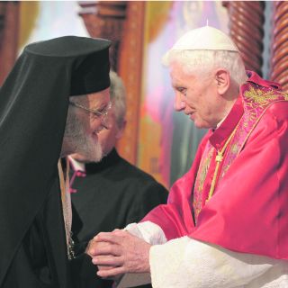 Benedicto XVI, al reunirse con el patriarca maronita, monseñor Bechara Rai.