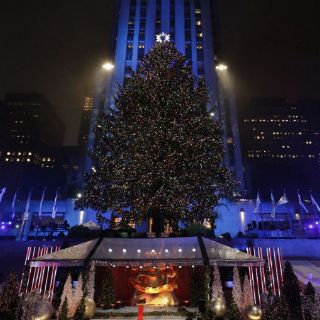 Unos ocho kilómetros de cable para conectar unas 50 mil luces LED sirvieron para iluminar el abeto, de más de 90 años y casi 29 metros de altura, instalado en uno de los lugares de la ciudad más visitados por los turistas por estas fechas.