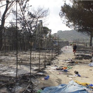 Más de 50 contenedores usados como casas, además de entre 40 y 50 tiendas de campaña, quedaron destruidos en la madrugada del lunes al martes cuando se declaró un gran fuego en el campamento de Moria, lo que dejó sin refugio y pertenencias a centenares de migrantes.