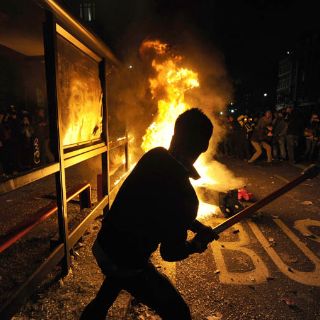 Pequeños grupos de manifestantes lanzaron elementos de mobiliario a los agentes y otros atacaron una furgoneta de la policía en la masiva concentración junto a la sede del Parlamento, en el centro de Londres.