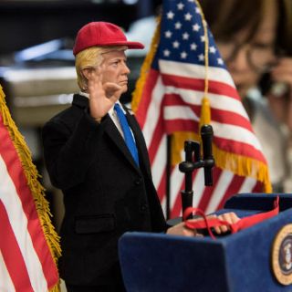 La figura de Trump, de 30.5 centímetros, lleva una gorra roja con el lema "Make America Great Again" e incluye un atril presidencial, así como dos cabezas intercambiables con diferentes expresiones faciales.