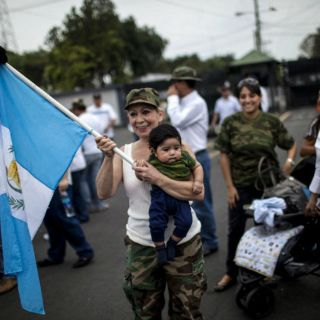 GUATEMALA, GUATEMALA (12/MAY/2013).- Un puñado de familiares de militares se manifestaron hoy en apoyo al general retirado José Efraín Ríos Montt, condenado el pasado viernes a 80 años de prisión por genocidio y crímenes de lesa humanidad en Guatemala.