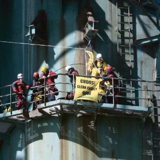 La organización ecologista informó que siete activistas, algunos provistos con aparejos de escalar, utilizaron botes veloces para interceptar el envío en la madrugada y subir a lo alto de la plataforma Leiv Eiriksson.