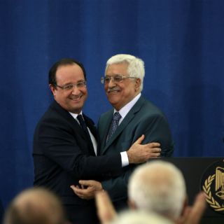 François Hollande, llegó hoy a Ramala, donde analizará con su homólogo, Mahmud Abás, el actual proceso de paz en Oriente Medio.