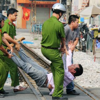 Centenares de policías con armas automáticas y equipos antidisturbios disolvieron la protesta, y arrestaron a unos 60 manifestantes en Hanoi y alrededor de otros veinte que se habían concentrado delante del consulado china en Ho Chi Minh (antigua Saigón).