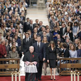 El presidente del Gobierno español, Mariano Rajoy, y el jefe del ejecutivo regional de Galicia, Alberto Nuñez Feijóo, asistían también a la ceremonia, al igual varios ministros y otras autoridades políticas y eclesiásticas, que junto con los familiares de las víctimas y fieles llenaban la catedral.