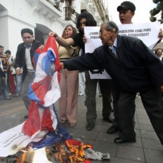 La sede de gobierno, en el centro antiguo de la ciudad, fue custodiada por decenas de policías, que controlaron a medio centenar de personas lograron llegar hasta el frente del edificio, donde en medio de gritos contra Estados Unidos, quemaron dos banderas de ese país.