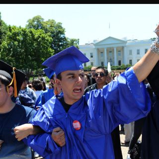 Ayer, unos 200 estudiantes se manifestaron afuera de la Casa Blanca para pedir la aprobación de la DREAM Act, que les otorgaría la ciudadanía si estudian la universidad o se enlistan en las Fuerzas Armadas.