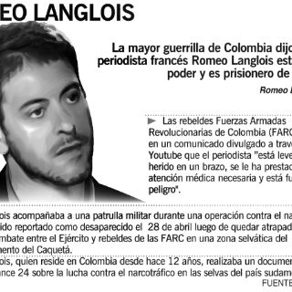 El reportero fue retenido por las Fuerzas Armadas Revolucionaras de Colombia (FARC) en medio de un combate entre guerrilleros con policías y militares, a los que Langlois acompañaba para filmar un operativo de destrucción de laboratorios de drogas.