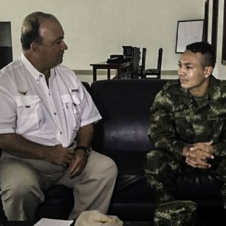 BOGOTÁ, COLOMBIA (20/MAR/2016).- El suboficial del Ejército colombiano Jair de Jesús Villar, secuestrado el pasado 3 de febrero, fue entregado hoy por el rebelde Ejército de Liberación Nacional (