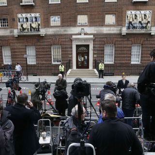 Decenas de periodistas y curiosos se congregaron ante Saint Mary desde el momento en que se conoció el ingreso de Catalina.