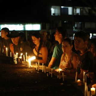 Cerca de un centenar de personas se congregaron para encender velas y rezar por los muertos, los heridos y damnificados