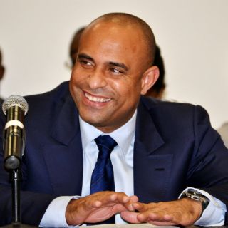 El primer ministro, Laurent Lamothe, enfatiza una presentación para resaltar los logros de su mandato