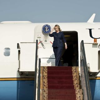 EL CAIRO, EGIPTO (14/JUL/2012).- La secretaria de Estado estadounidense, Hillary Clinton, llegó hoy a Egipto en la primera visita de un responsable estadounidense de ese nivel desde que el pasado 30 de junio el islamista Mohamed Mursi asumiera la Presidencia del país.