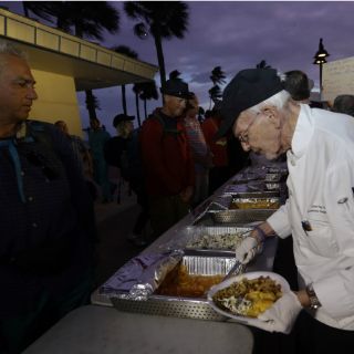 Arnold Abbot reparte comida por la noche a gente sin hogar en Fort Lauderdale, Florida