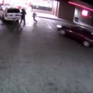 Un sedán rojo arremetió contra los agentes desde el estacionamiento, atropelló a dos y se estrelló contra la tienda. El policía que logró evadir el auto corrió hacia él y sacó al conductor. Hubo un enfrentamiento. El novato, a pesar del golpe en la cabeza que sufrió al ser golpeado por el vehículo, sacó su pistola aturdidora y logró someter al sospechoso para que fuera arrestado.