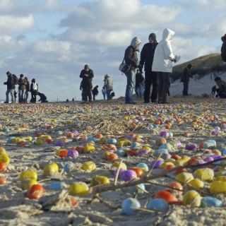 Una fuerte tormenta inundó las playas con huevos de plástico que contienen juguetes diminutos, para deleite de los vecinos más pequeños de la isla.