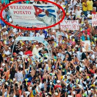 En ella, se puede leer “Welcome Potato”, literalmente se traduce al español como “Bienvenido papa”, pero haciendo referencia al tubérculo, y no al nombramiento, que en inglés sería “Pope”.