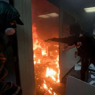 En la zona se desarrollaba una manifestación opositora cuando los encapuchados comenzaron a atacar la sede del Poder Judicial, a la que rociaron con gasolina y, posteriormente, prendieron fuego.