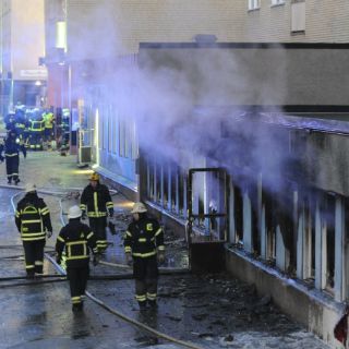 ''Alguien lanzó un proyectil a través de una ventana y se declaró un incendio al interior'', declaró un portavoz de la policía, Lars Franzell.