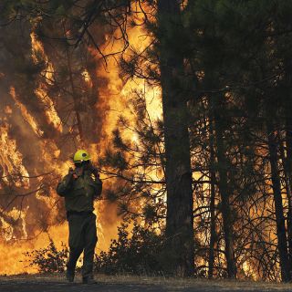 El Departamento Forestal de Estados Unidos informó que casi tres mil bomberos participan en las labores de control del incendio que inició el domingo 17 de agosto