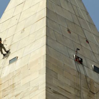 Buscan daños al exterior del obelisco de mármol de 169 metros de altura