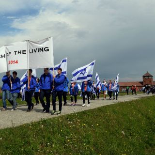 Con banderas azules y blancas de Israel y luciendo chaquetas azules, los participantes caminaron tres kilómetros bajo la llovizna desde la entrada hasta un memorial de piedra en Birkenau para escuchar un discurso del presidente de Hungría, Janos Ader, en memoria de las víctimas. Estuvieron acompañados por varios sobrevivientes, el embajador israelí en Polonia, Zvi Rav-Ner, el exrabino de Tel Aviv Meir Lau, y jóvenes polacos.