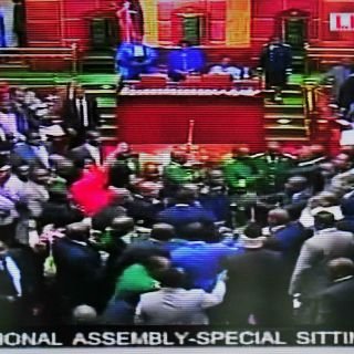 El presidente de la cámara, Justin Muturi, reanudó el recuento de los votos a última hora de la tarde, luego de varias suspensiones desde la mañana debido a peleas y al lanzamiento de libros, papeles y otros proyectiles, mientras los ujieres intentaban proteger a los legisladores.