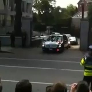 DUBLÍN, IRLANDA (23/MAY/2011).- El auto blindado de Barack Obama, llamado la "bestia", se quedó atorado al salir de la embajada estadounidense en Dublín cuando debía llevar al presidente a la siguiente etapa de su visita en Irlanda, según la radio local.