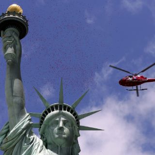 La Estatua de la Libertad recibe una lluvia de rosas