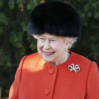 Con un abrigo naranja y un gorro de piel negra, la reina llegó a la ceremonia religiosa en la iglesia St. Mary de la propiedad acompañada por su nieta Zara Phillips, que está embarazada con su primer hijo.
