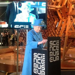 ''Es un placer inaugurar la exibición ''La era de la información'' en el museo de ciencia y espero que disfruten su visita. Elizabeth R.''