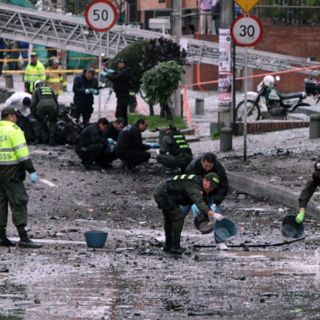 BOGOTÁ, COLOMBIA (13/AGO/2010).- El atentado contra Radio Caracol y la agencia EFE atribuido por la Policía a las Fuerzas Armadas Revolucionarias de Colombia (FARC) dejó 18 lesionados en el Centro de Bogotá y dibujó la primera aparición del grupo insurgente durante la presidencia de Juan Manuel Santos.