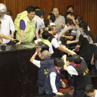 TAIPEI, TAIWÁN (02/AGO/2013).- Los Legisladores taiwaneses se agarraron a golpes y se arrojaron agua este viernes antes de una esperada votación que autorizaría un referendo sobre la terminación de la cuarta