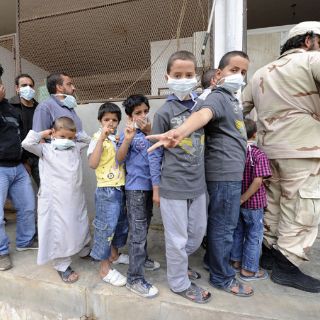 Mustafá Araibi, de unos 40 años, sale de la cámara frigorífica con cinco niños de edades comprendidas entre los 6 y los 12 años. Son sus hijos y los de su hermano. "Me quedé conmocionado cuando se anunció la noticia. La gente me decía que Gadhafi había muerto, pero yo no lo he creído hasta que le he visto", cuenta.