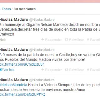 Así lo tuiteó: "En homenaje al Gigante Nelson Mandela decidí en nombre de toda Venezuela, decretar tres días de duelo en toda la Patria de Bolívar y Chávez".