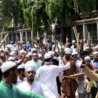 Gritando "Alá Akbar" (Dios es grande) y "los ateos deben ser colgados", militantes del grupo radical Hefajat e Islam marcharon por seis grandes calles de la capital de Bangladesh, bloqueando la circulación entre Dacca y otras ciudades.