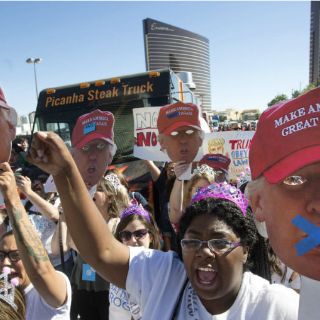 La protesta, que también incluyó el estacionamiento de camiones de venta de tacos, ocurrió horas antes del último debate entre el aspirante republicano y la demócrata Hillary Clinton, en el campus de la Universidad de Las Vegas (UNLV), en el estado de Nevada.