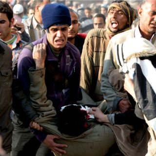 El ministro de Salud dijo que se reportó un muerto una persona en ropa civil que podría ser un policía y que cayó de un puente y casi 600 heridos. Manifestantes ensangrentados eran atendidos en clínicas improvisadas en mezquitas y callejones y se informó de cientos de heridos. Algunos lloraban y rezaban en la plaza donde unos 10 mil manifestantes se habían congregado por la mañana y apenas el día anterior una multitud jubilosa de un cuarto de millón había exigido pacíficamente la renuncia de Mubarak.