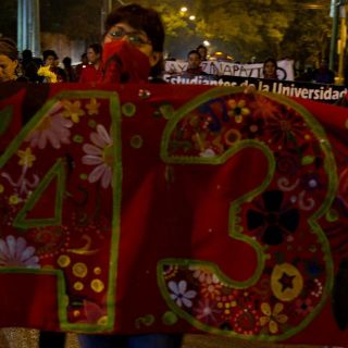 "Yo soy maestra y me duelen los 43", "Indignación global x Ayotzinapa" y "Nos faltan 43", señalaban varias pancartas en las que estaban inscritos los nombres de los estudiantes desaparecidos.