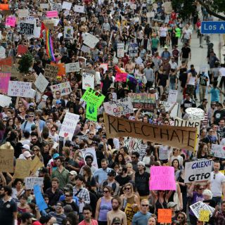 Marchan 10 mil personas en Los Ángeles contra Trump