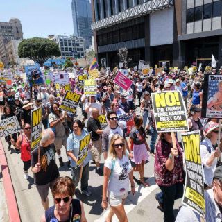 LOS ÁNGELES, ESTADOS UNIDOS (02/JUL/2017).- Miles de personas participaron hoy en marchas y concentraciones convocadas en 46 diferentes ciudades de Estados Unidos para pedir al Congreso que inicie el proceso de destitución contra el presidente, Donald Trump.
