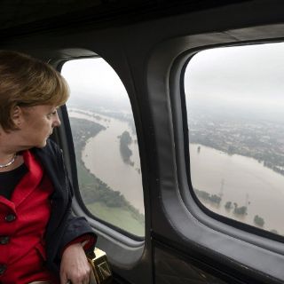 Merkel abordó un helicóptero para ver desde el aire la extensión de los daños en Bavaria, y se mostró sorprendida por su severidad, y dijo que en 2002 se pensó que la situación había llegado a un punto exorbitante, pero afirmó que ahora la situación es peor que hace 11 años.