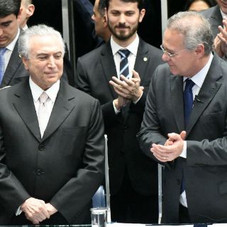 En la mesa de la dirección del Congreso, Temer fue flanqueado por los presidentes del Senado, Renán Calheiros, de la Cámara de los Diputados, Rodrigo Maia, y de la Corte Suprema, Ricardo Lewandowski, quien dirigió las sesiones del juicio político contra Rousseff en su condición de garante constitucional del proceso.