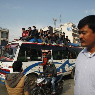 Autobuses con gente apilada en el techo o colgada de las puertas salen de lo que queda de las estaciones de la capital nepalí, mientras filas de personas buscan un asiento en cualquier vehículo que les lleve fuera de Katmandú, principal ciudad del valle.