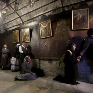 A la espera de este momento, tropas de scouts palestinos con sus gaitas, herencia del mandato británico (1920-1948), desfilaban bajo la mirada atenta de cientos de turistas ante la Basílica de la Natividad, el lugar de nacimiento de Cristo según la tradición.
