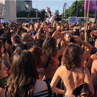 BUENOS AIRES, ARGENTINA (08/FEB/2017).- Varias decenas de mujeres le declararon la guerra al machismo y proclamaron la libertad de sus cuerpos descubriendo sus senos ayer en pleno centro de Buenos Aires y otras ciudades argentinas.