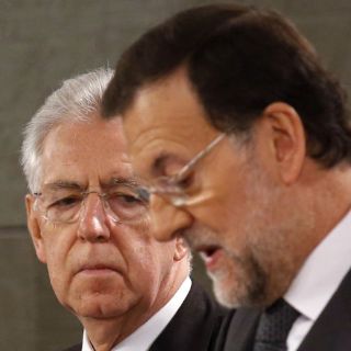 Tras la celebración de una cumbre bilateral con Mario Monti, el presidente del Gobierno español, a preguntas de los periodistas, asegura que de momento España no recurrirá al mecanismo europeo